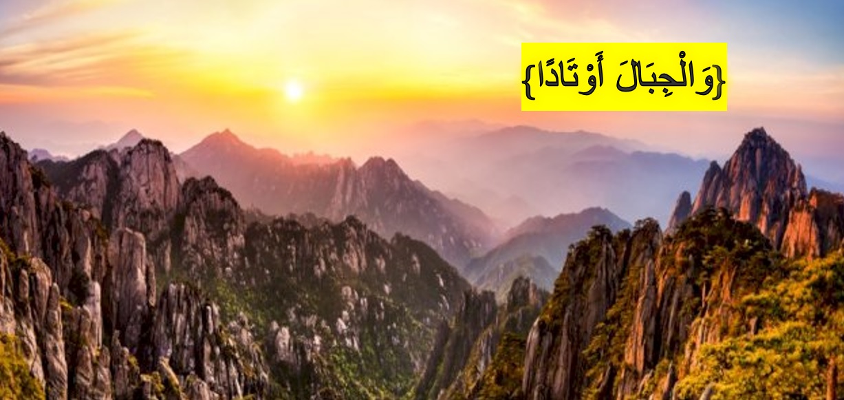 قال – تعالى: (وَالْجِبَالَ أَوْتَادًا) والوتد هو ما يُغرس في الرّمال لتثبيت الخيام، والجبال يصل امتدادها إلى الطّبقة الموجودة أسفل الطّبقة الصّخرية التي تُكوّن القارّات، فأصبحت الجبال تُثبِّت القارّات كما هو الوتد بالنّسبة للخيمة، حيث تقوم الجبال بِحمل الطّبقة الصّخرية المُكوِّنة للقارّات، وعليه فإنَّ الجبال هي التي تحمل الأرض، ولولاها لكانت الأرض في حالة اضطراب دائم، ويعدّ هذا من أبرز صور الإعجاز العلميّ في القرآن الكريم والذي اكتشفه العلم مؤخراً، وفيه دلالة على صدق النبيّ -عليه الصّلاة والسّلام- وما جاء به من كلام الله -تعالى- في القرآن الكريم.