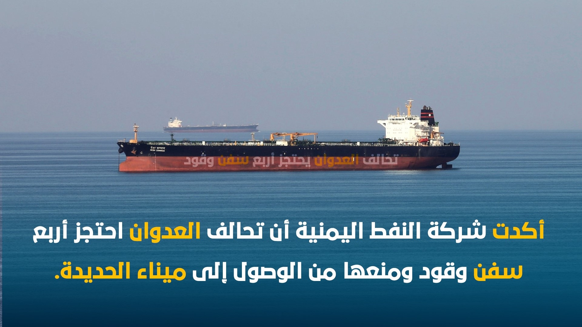 أكدت شركة النفط اليمنية أن تحالف العدوان احتجز أربع سفن وقود ومنعها من الوصول إلى ميناء الحديدة.