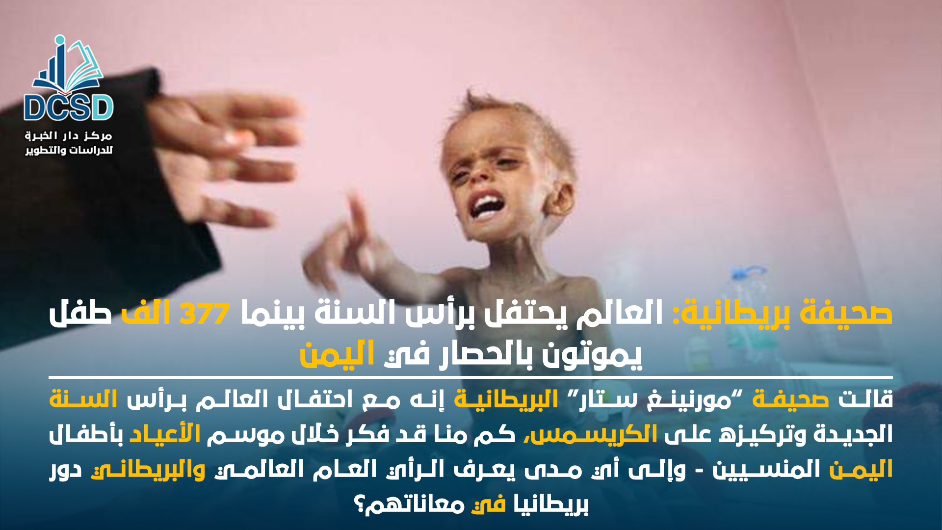 قالت صحيفة ”مورنينغ ستار“ البريطانية إنه مع احتفال العالم برأس السنة الجديدة وتركيزه على الكريسمس، كم منا قد فكر خلال موسم الأعياد بأطفال اليمن المنسيين – وإلى أي مدى يعرف الرأي العام العالمي والبريطاني دور بريطانيا في معاناتهم؟