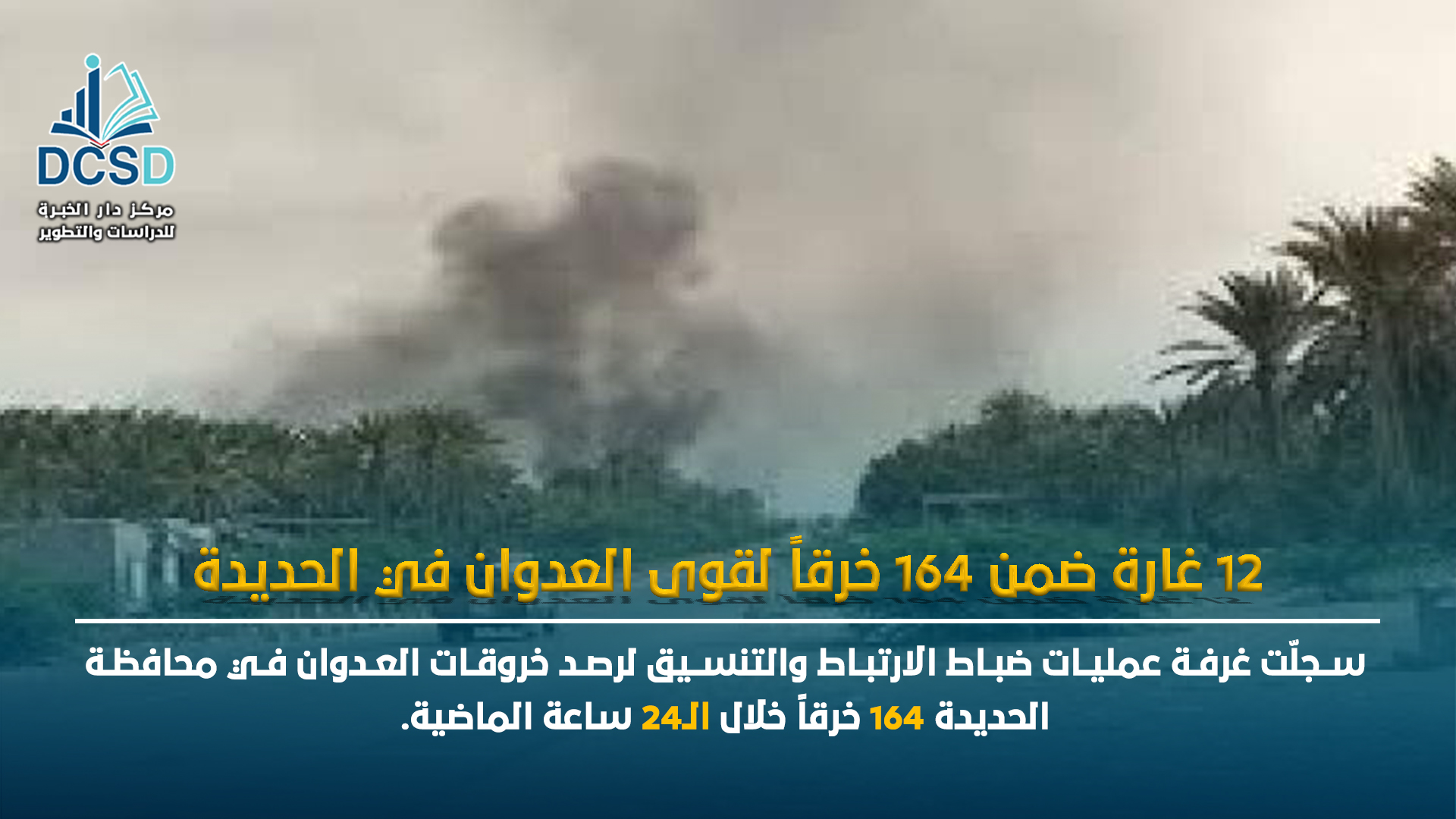12 غارة ضمن 164 خرقاً لقوى العدوان في الحديدة Posted on 2023-01-08 by اسامة السراجي 0 min read سجلّت غرفة عمليات ضباط الارتباط والتنسيق لرصد خروقات العدوان في محافظة الحديدة 164 خرقاً خلال الـ24 ساعة الماضية. وأوضح مصدر في غرفة العمليات، أن من بين خروقات قوى العدوان، محاولة تسلل في حيس و12 غارة للطيران التجسسي على حيس والجبلية. وأشار المصدر إلى أن قوى العدوان ارتكبت أيضا 44 خرقاً بقصف صاروخي و87 خرقاً بالأعيرة النارية المختلفة المشاركة : فيس بوك 0 تويتر البريد الالكتروني طباعة