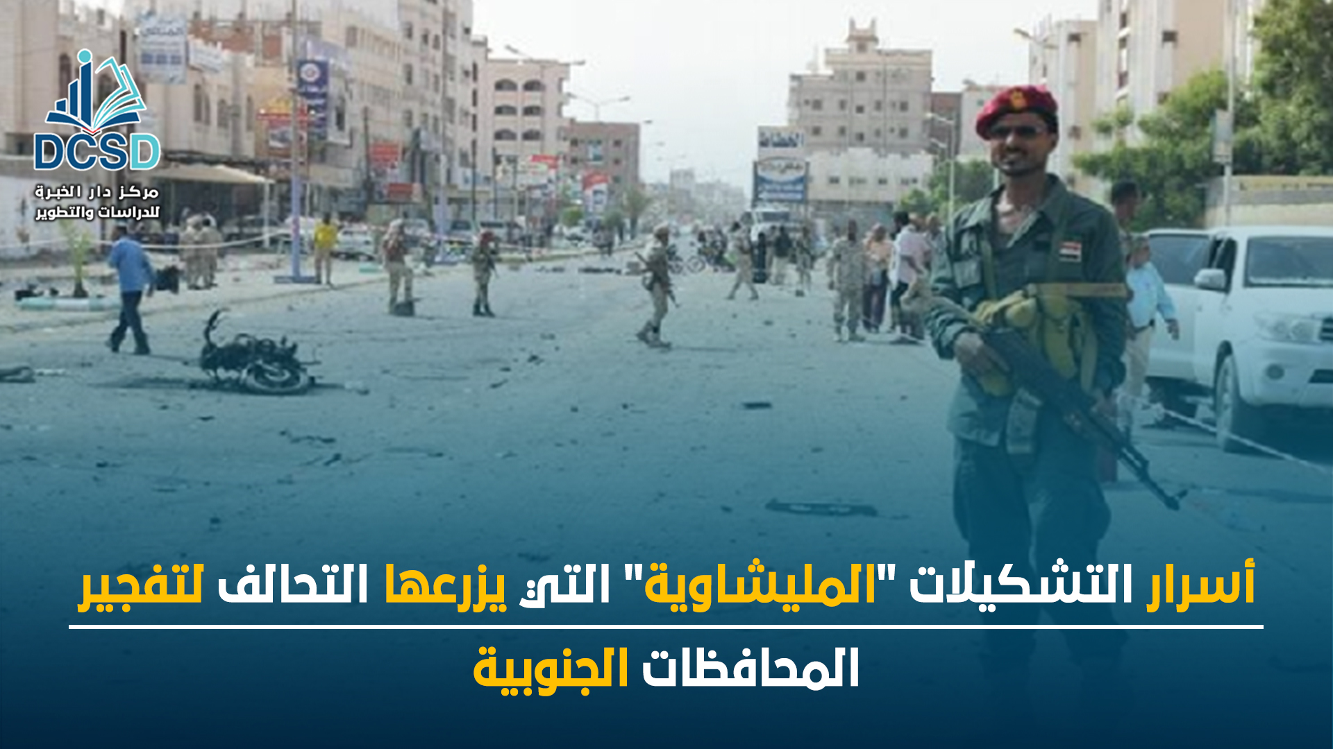 ووفقا لقرارات وتوجهات تحالف العدوان ايضا فثمة تشكيلات أخرى مستمر الإعداد لها تؤكد ان تحالف دول العدوان ماض في طريقه لمزيد من “الملشنة” وزرع العصابات والمجاميع المسلحة التي الهدف من خلالها والسر من وراء تشكيلها – بحسب ما يراه مراقبون وعسكريون – زرع التحالف لعصابات وجماعات مسلحة مليشاوية لأجل تفخيخ المحافظات الجنوبية بتلك المليشيات بغية تفجيرها بالوقت المناسب.