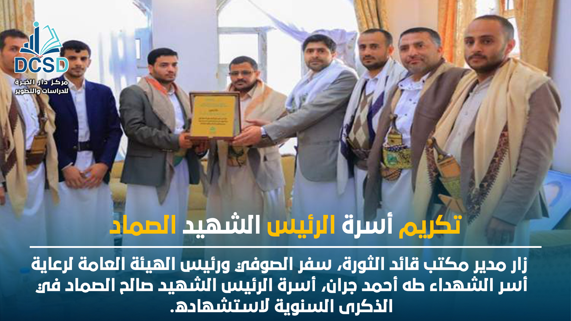 زار مدير مكتب قائد الثورة، سفر الصوفي ورئيس الهيئة العامة لرعاية أسر الشهداء طه أحمد جران، أسرة الرئيس الشهيد صالح الصماد في الذكرى السنوية لاستشهاده.