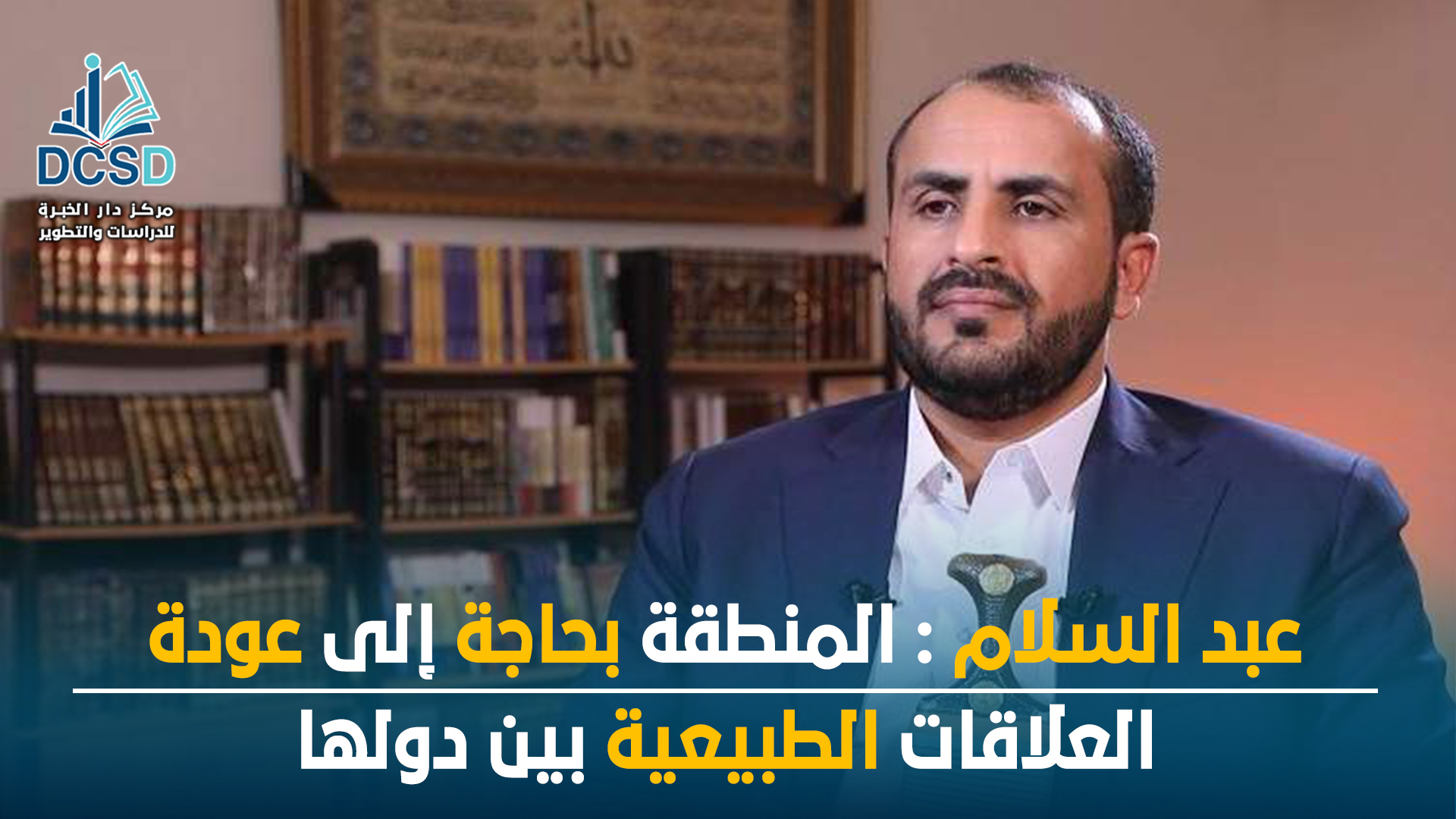 أكد رئيس الوفد الوطني المفاوض محمد عبدالسلام أن عودة العلاقات الطبيعية بين دول المنطقة تسترد بها الأمة الإسلامية أمنها المفقود نتيجة التدخلات الأجنبية.