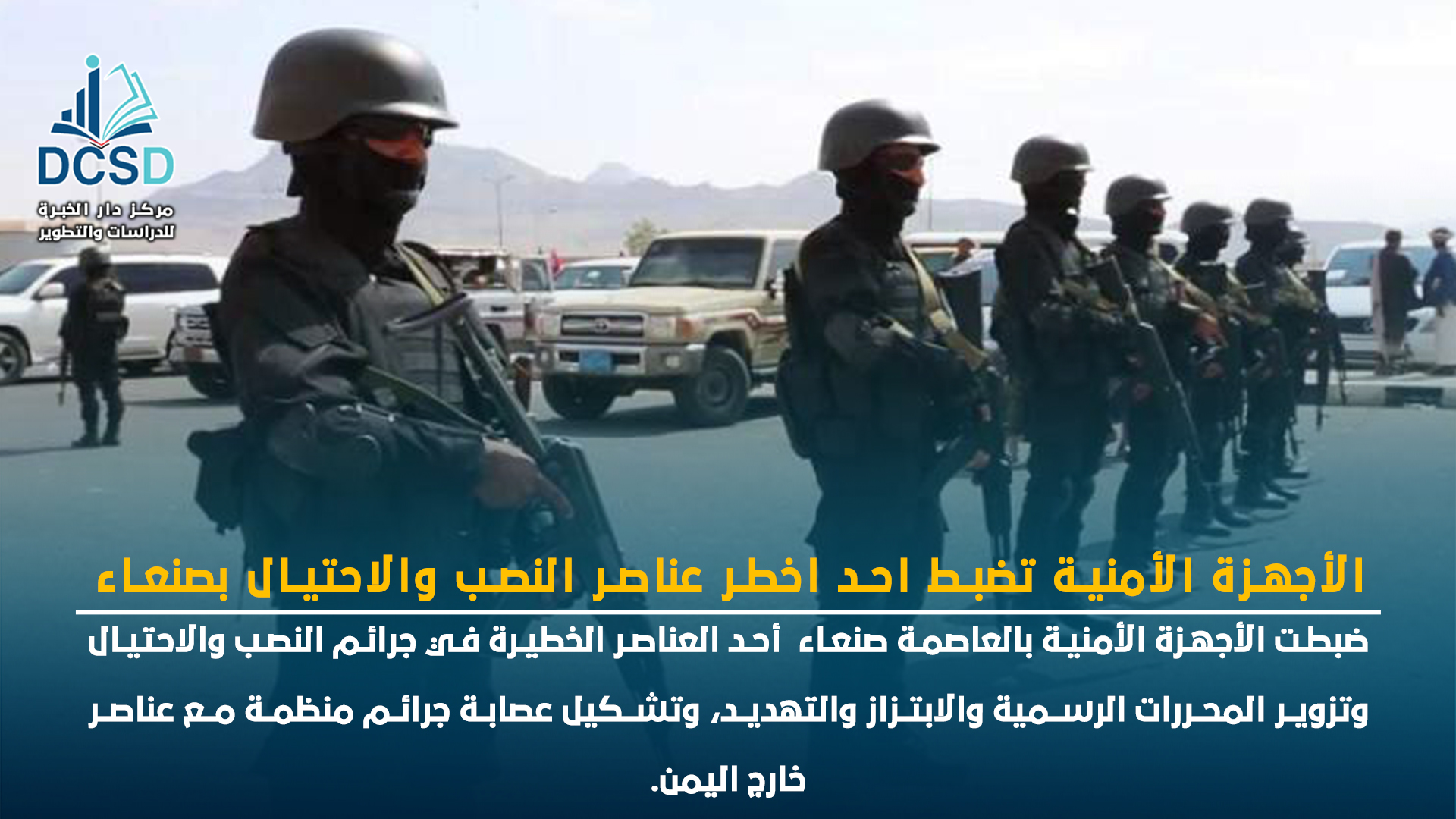 ضبطت الأجهزة الأمنية بالعاصمة صنعاء أحد العناصر الخطيرة في جرائم النصب والاحتيال وتزوير المحررات الرسمية والابتزاز والتهديد، وتشكيل عصابة جرائم منظمة مع عناصر خارج اليمن.