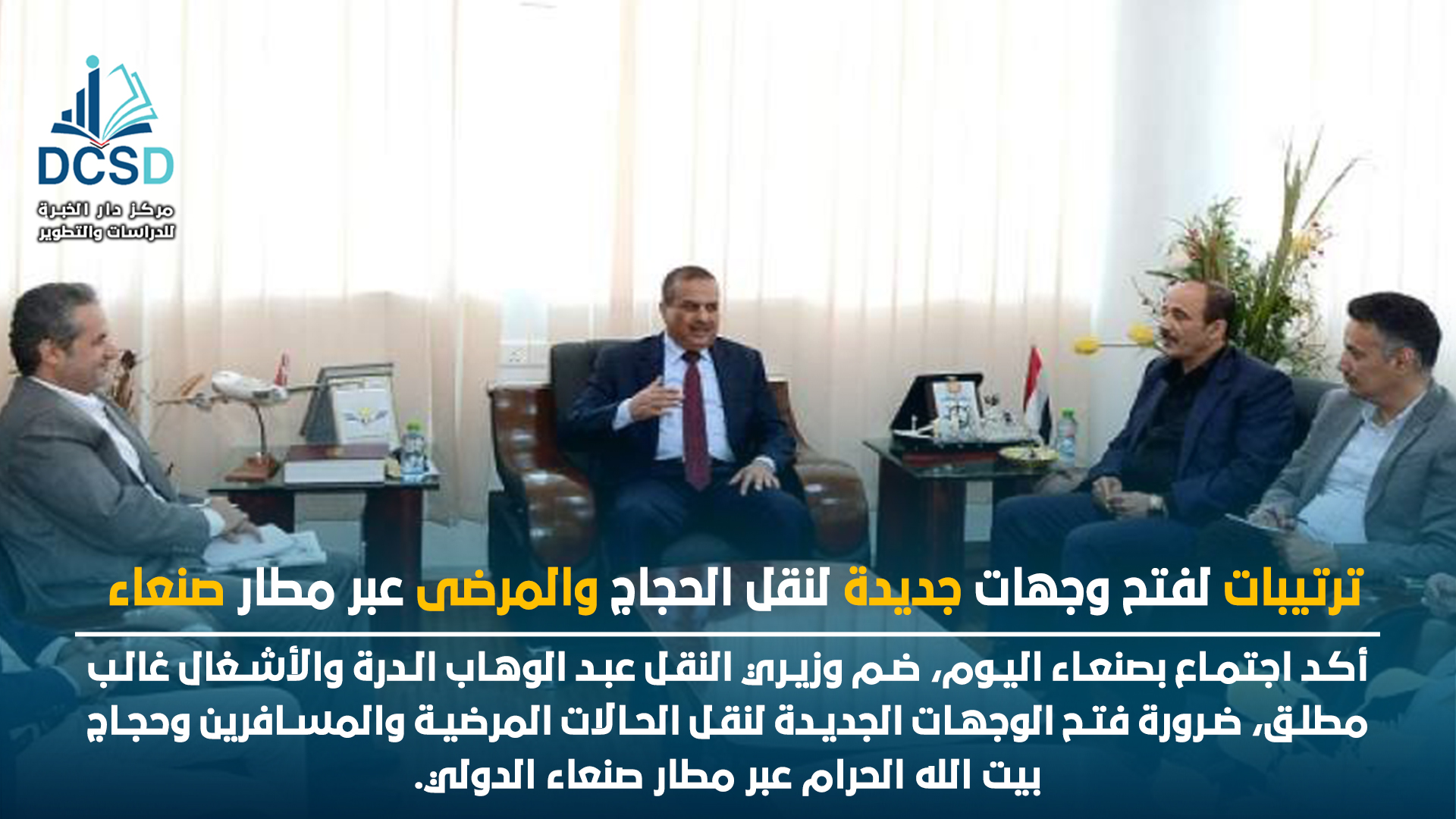 وفي الاجتماع أشار وزير النقل إلى أهمية قيام شركة الخطوط الجوية اليمنية بتخصيص رحلات جوية عبر مطار صنعاء لنقل حجاج بيت الله.