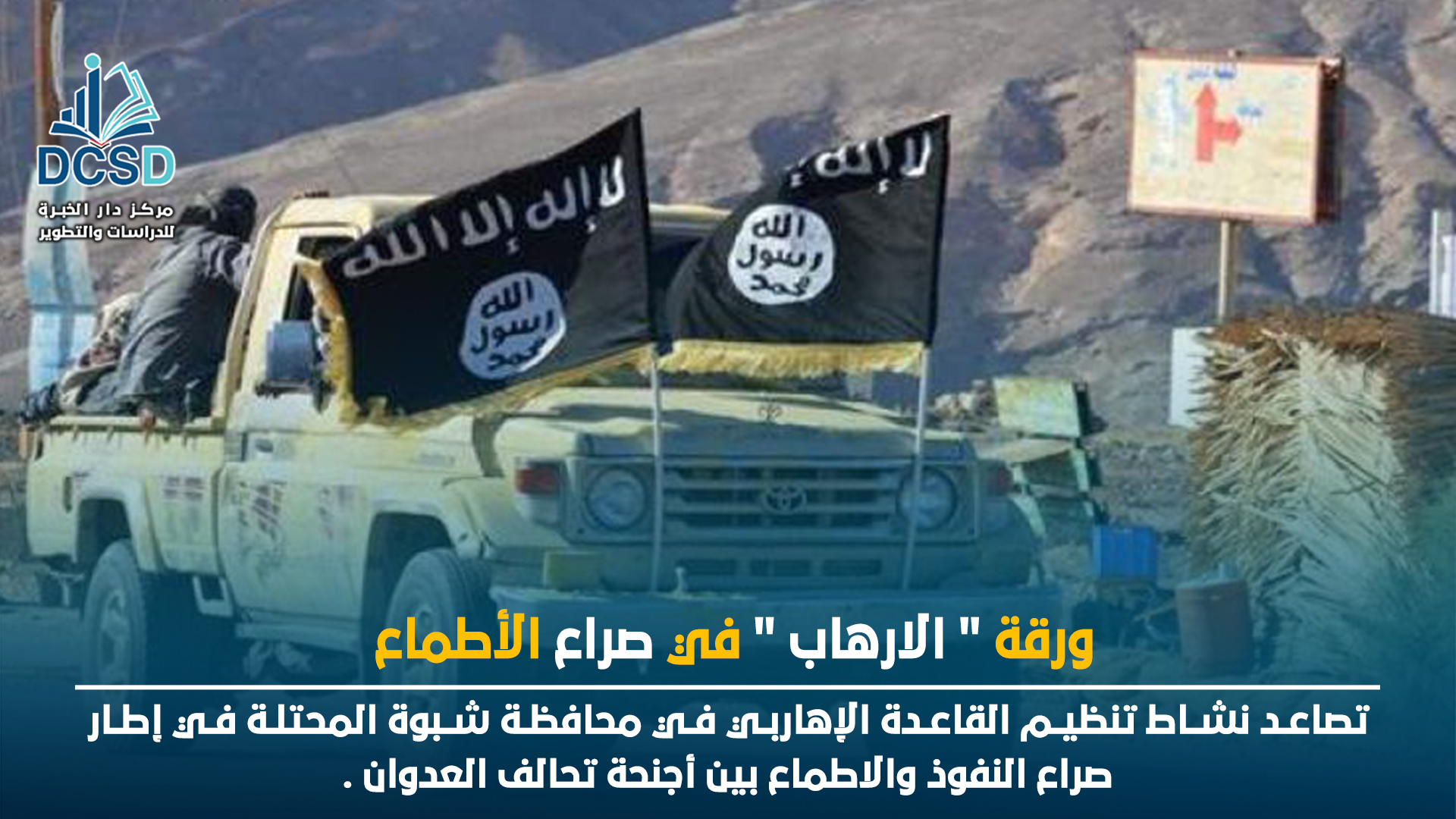 تصاعد نشاط تنظيم القاعدة الإهاربي في محافظة شبوة المحتلة في إطار صراع النفوذ والاطماع بين أجنحة تحالف العدوان .